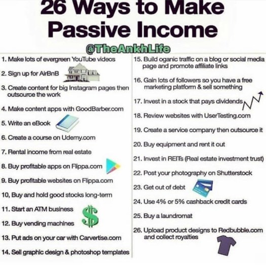 Posted on February 15, 2019 by Jermaine Filmore26 ways to make passive income Jermaine Filmore Jermaine Filmore Share this: Click to share on X (Opens in new window) X Click to share on Facebook (Opens in new window) Facebook Click to share on Reddit (Opens in new window) Reddit Click to share on Tumblr (Opens in new window) Tumblr Click to share on Pinterest (Opens in new window) Pinterest Like Loading...